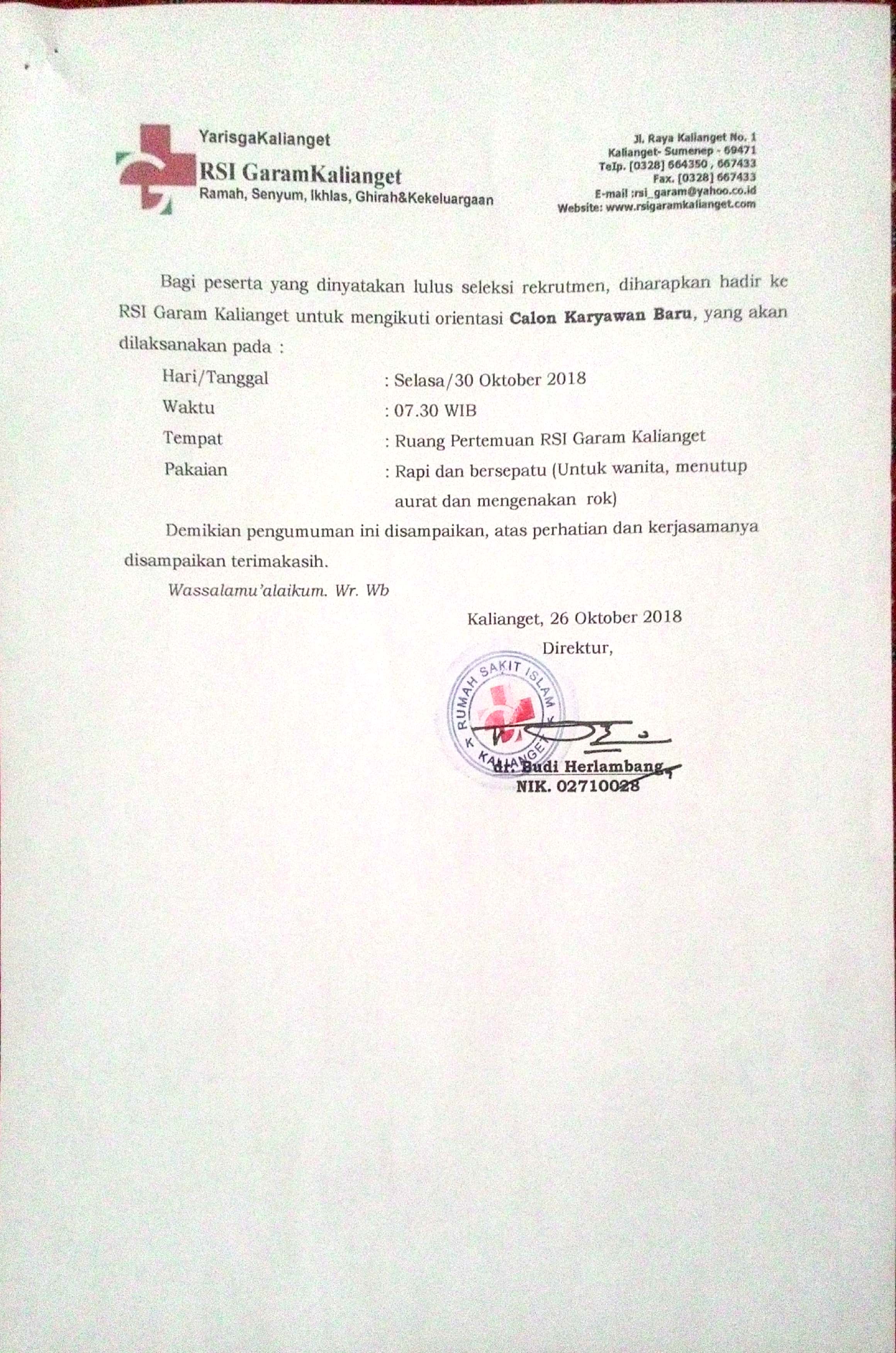 Dear Rini, untuk saat ini belum ada lowongan di RSIGK. Apabila ada lowongan akan kami informasikan melalui website ini atau instagram kami @rsi_garamkalianget