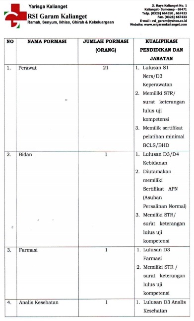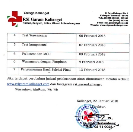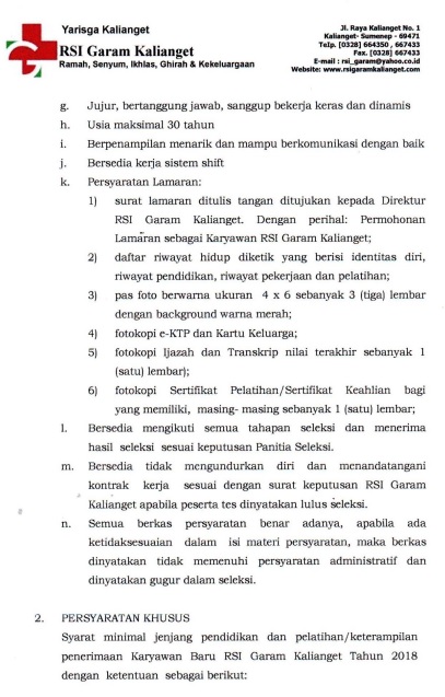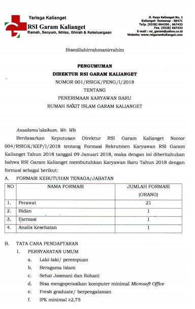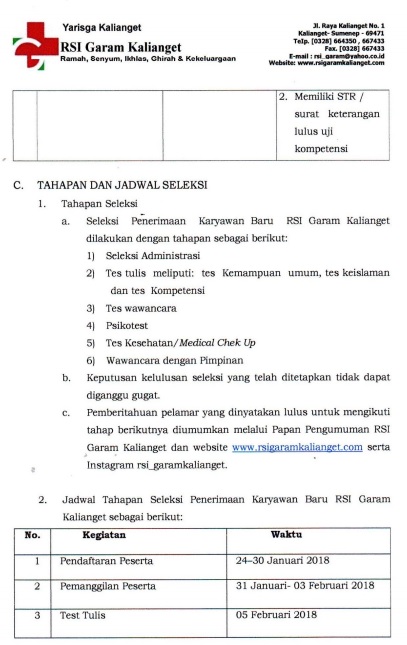 PENERIMAAN KARYAWAN BARU RSI GARAM KALIANGET TAHUN 2018