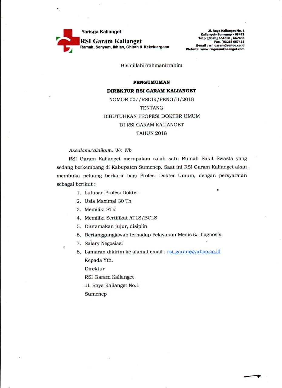 REKRUTMEN PROFESI DOKTER UMUM DI RSI GARAM KALIANGET